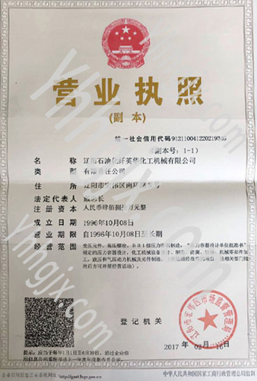 辽阳石油化纤英华化工机械有限公司创立于1993年,具有A2级压力容器制造,D1、D2级压力容器设计资格;具有压力管道元件、阀门、高强螺栓制造资格,是中国石油天然气集团公司网络供应商。